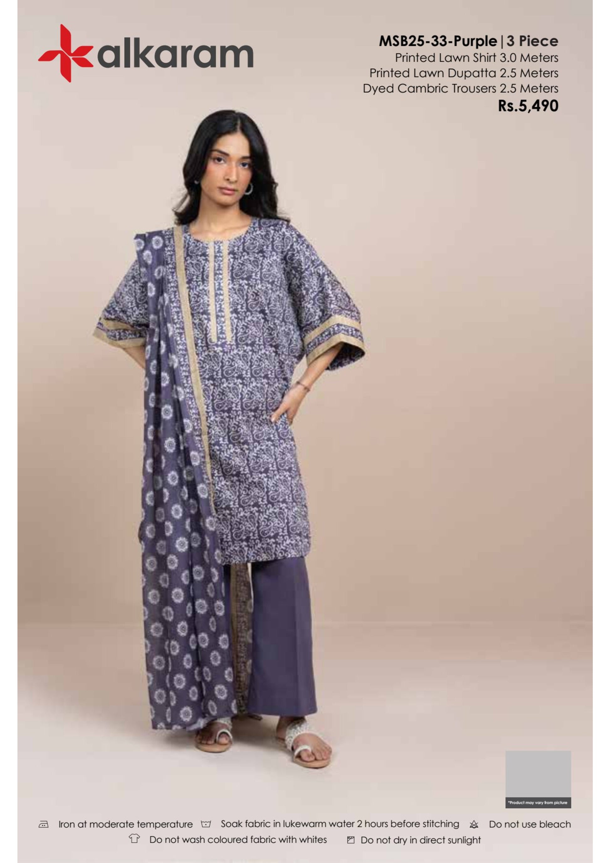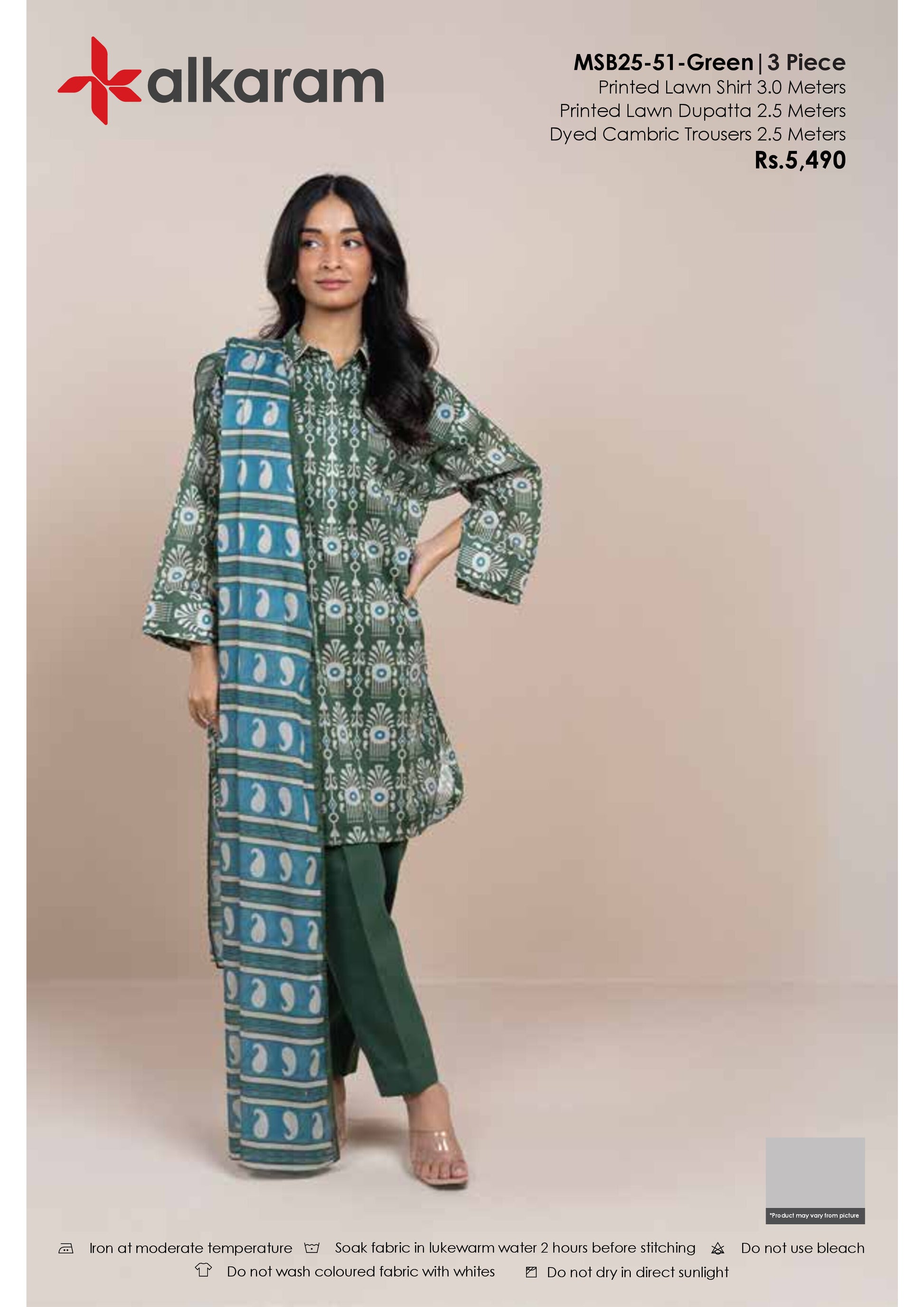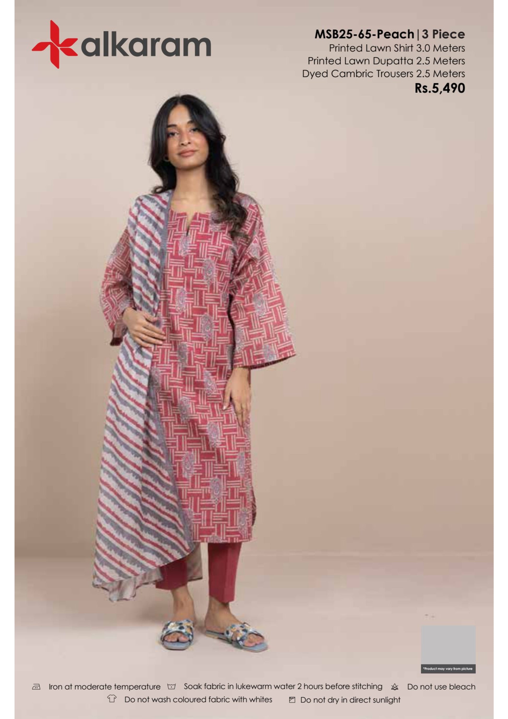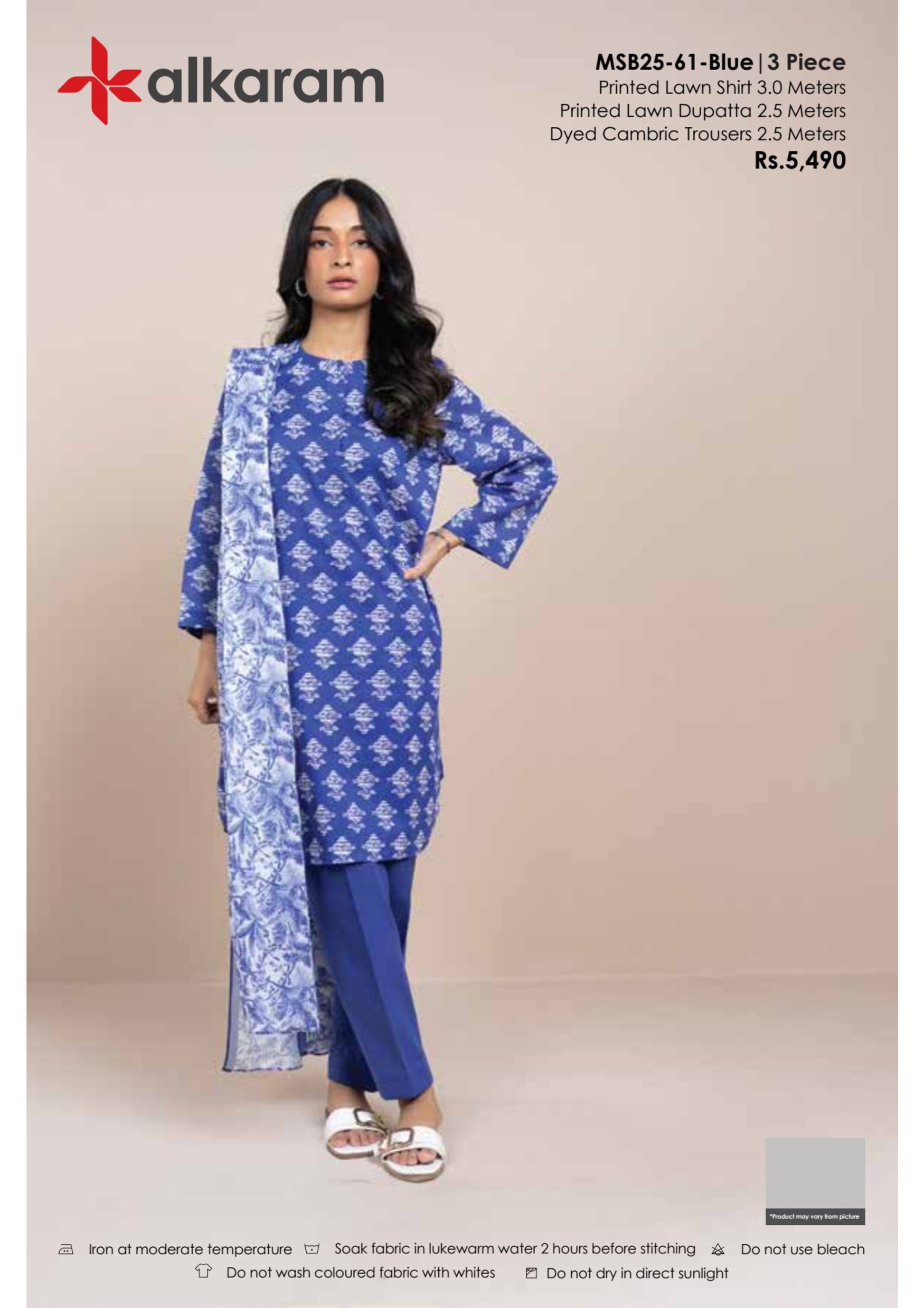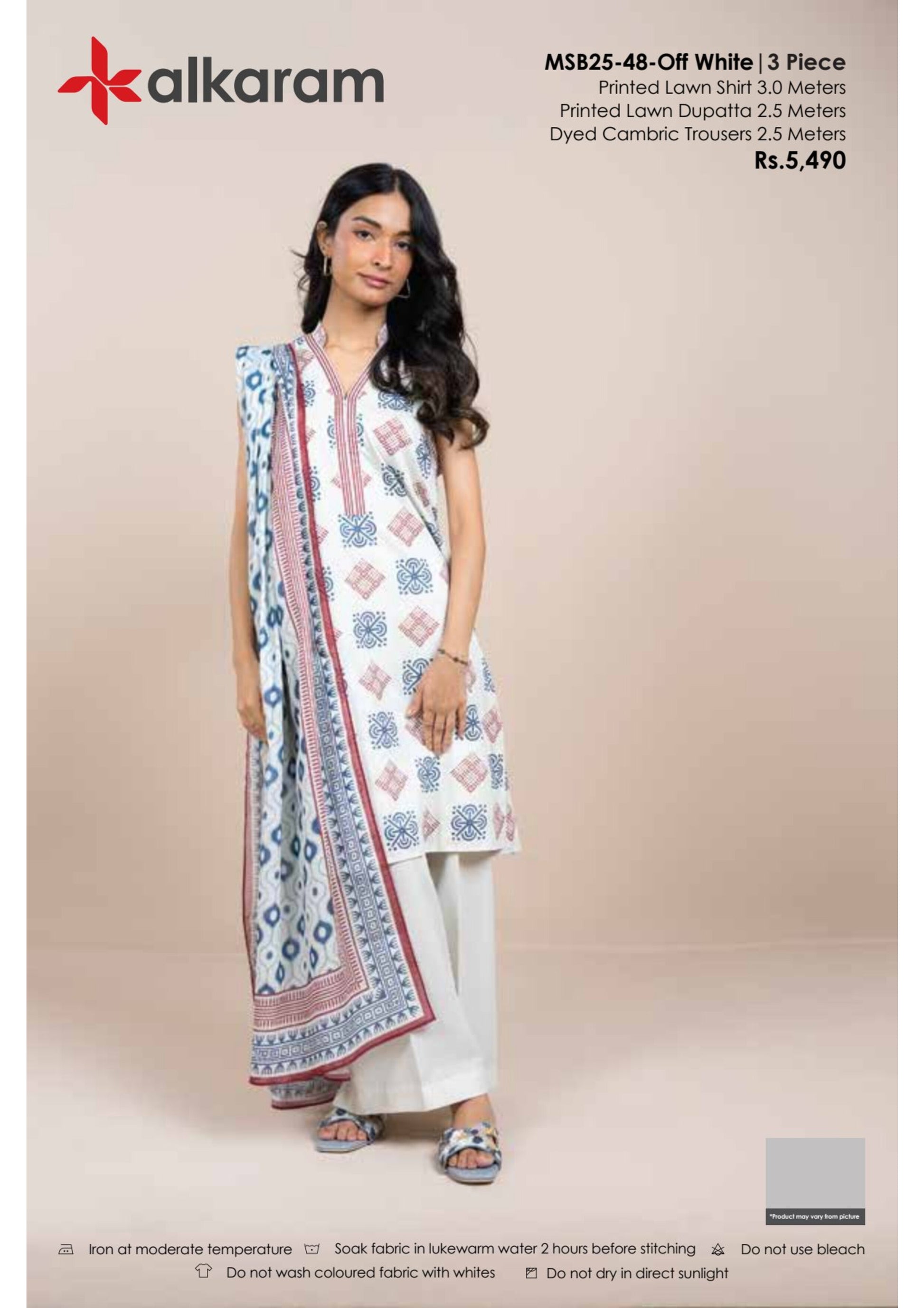 Piece Printed Lawn Shirt 3.0 Meters Printed Lawn Dupatta 2.5 Meters Dyed Cambric Trousers 2.5 Meters