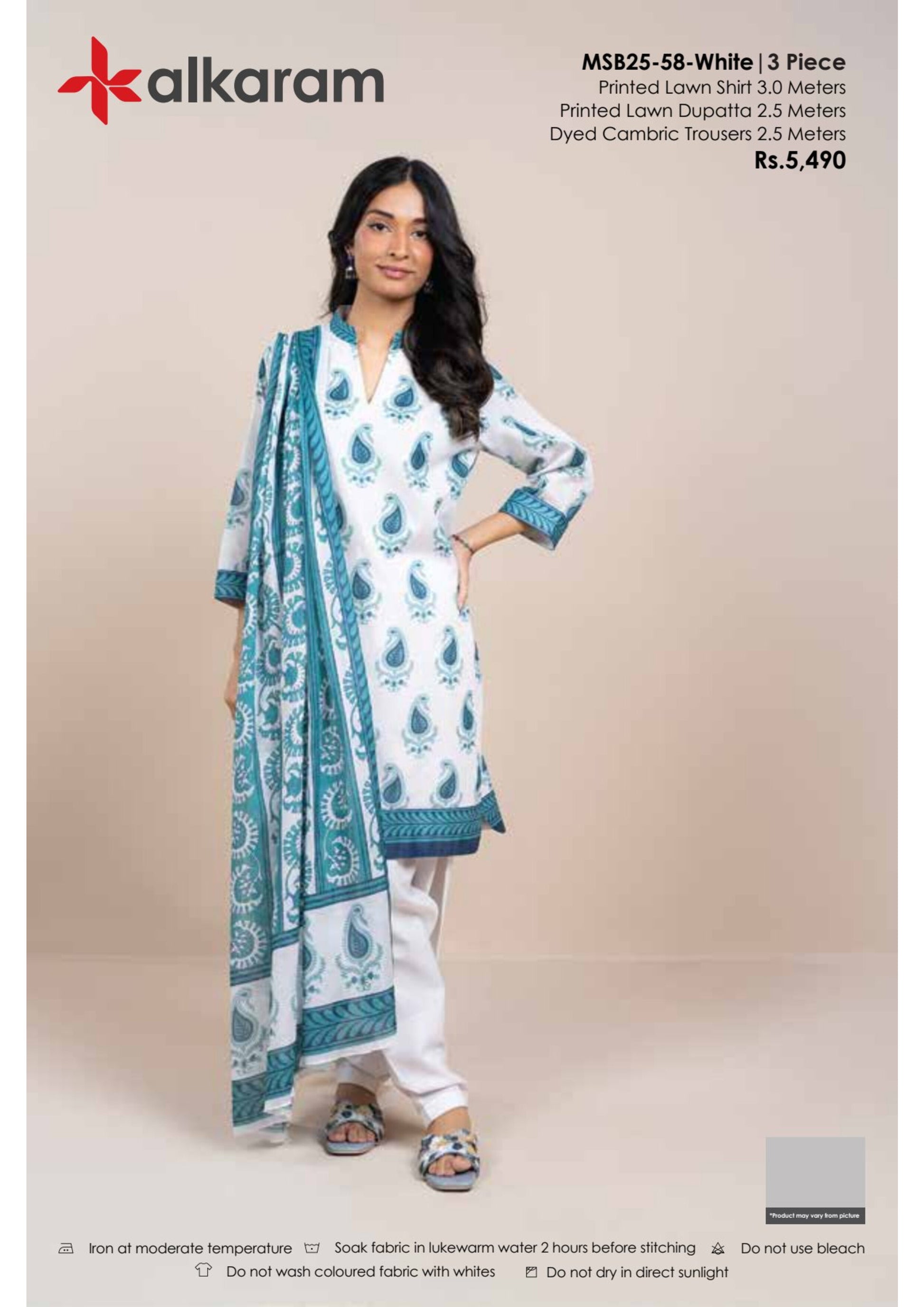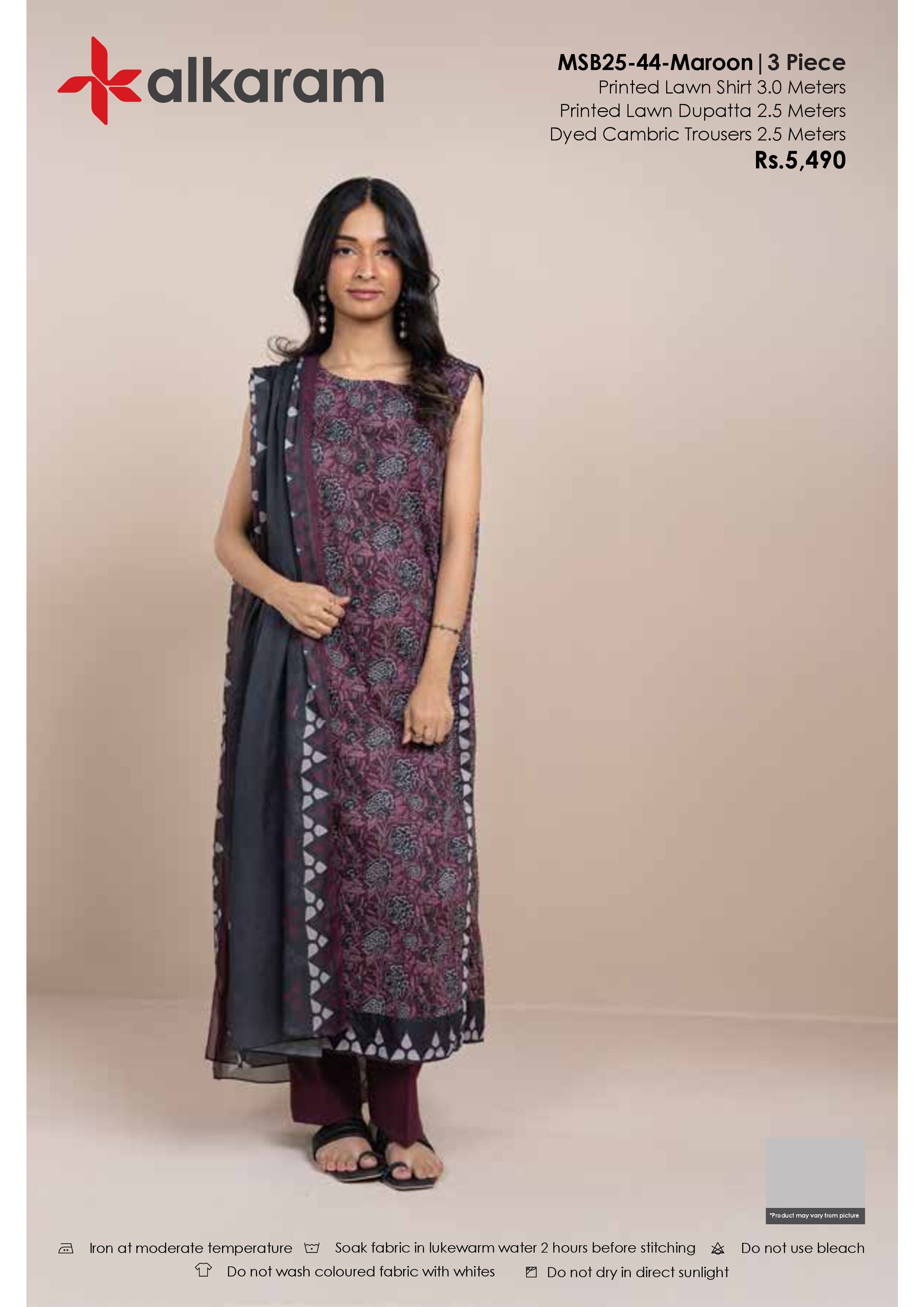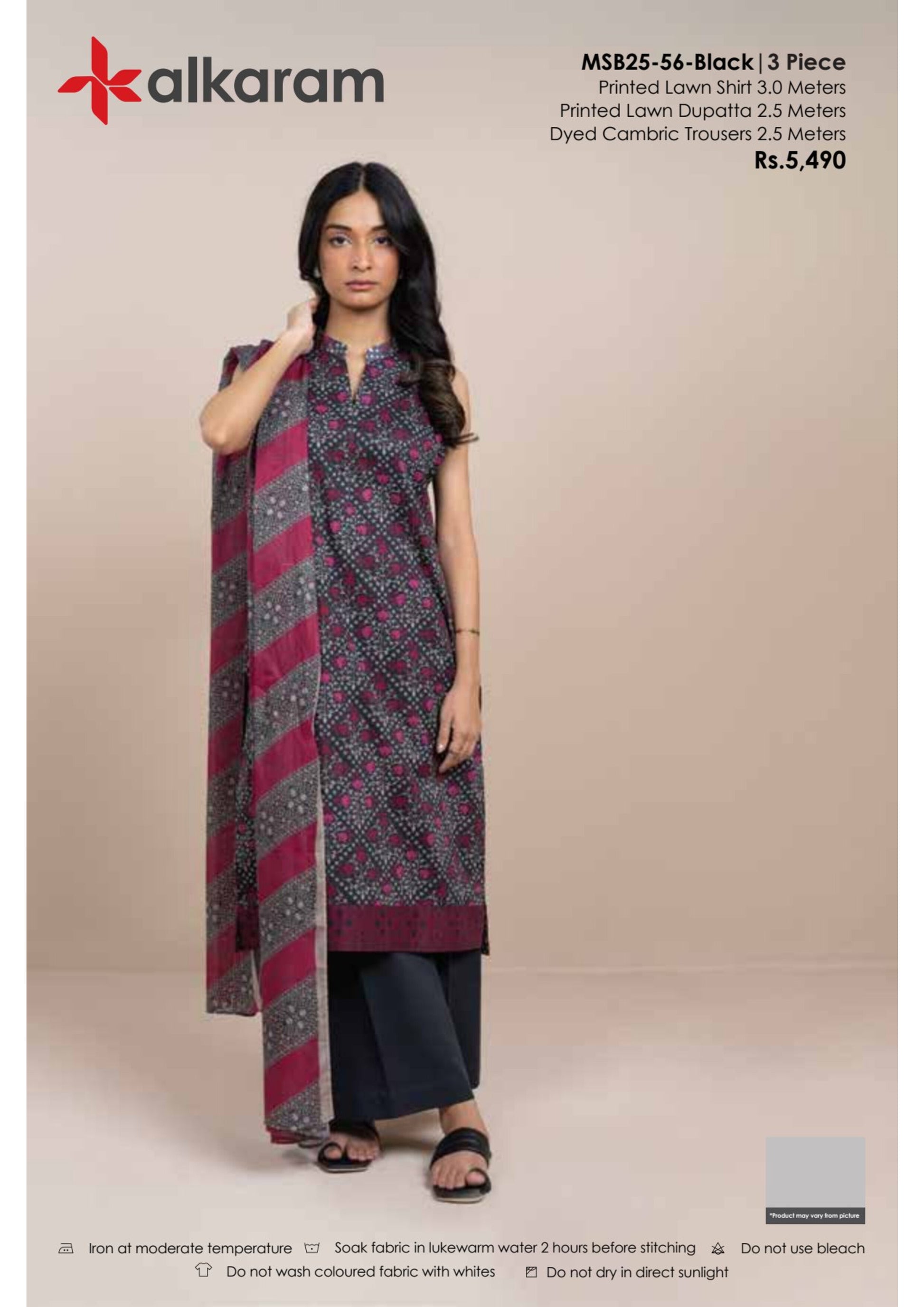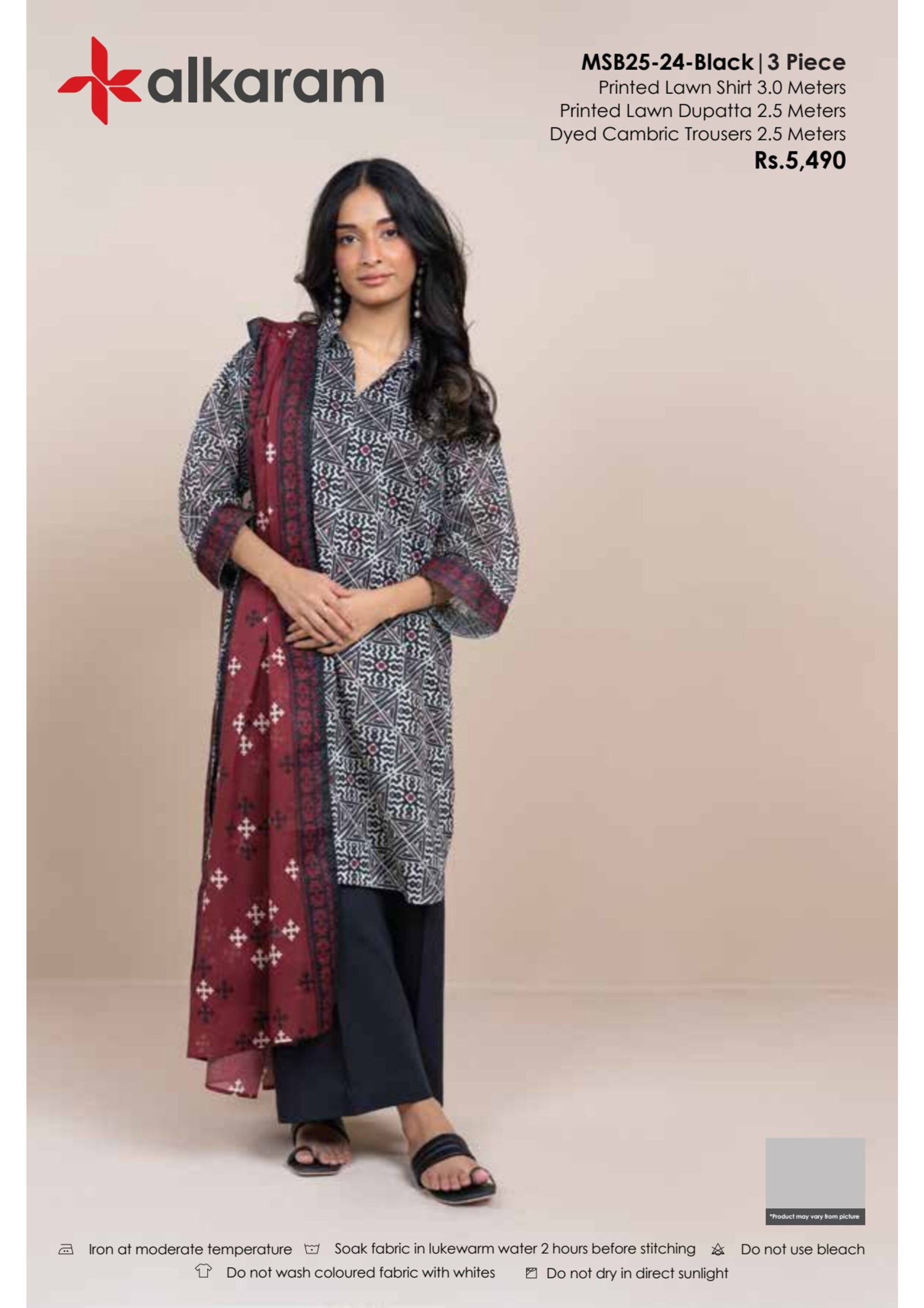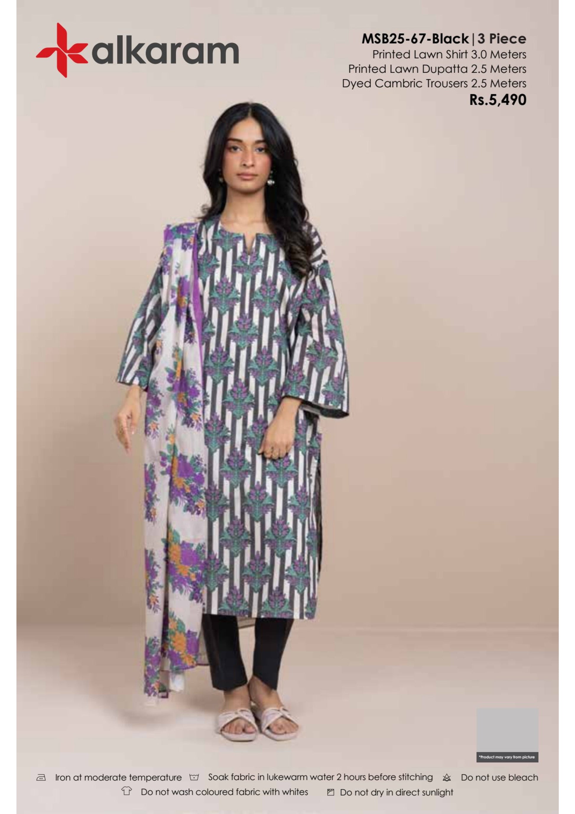 Piece Printed Lawn Shirt 3.0 Meters Printed Lawn Dupatta 2.5 Meters Dyed Cambric Trousers 2.5 Meters